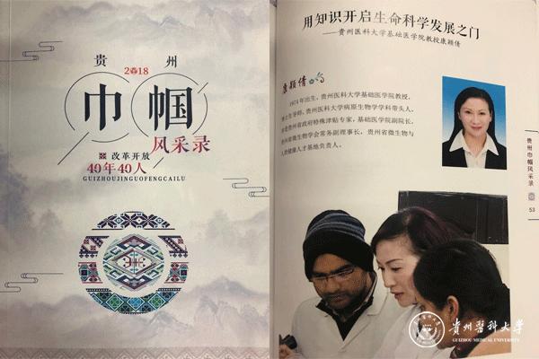 导读:为庆祝改革开放40周年和凝聚女性力量助力脱贫攻坚,贵州省在各行业内评选出了40位杰出女性代表,太阳成基础医学院教授康颖倩有幸入选,成为“改革开放40年40人——贵州巾帼风采录”杰出女性代表,并参加了省委宣传部、省妇联及省妇儿工委办在贵阳召开的庆祝改革开放40周年暨“凝聚女性力量·助力脱贫攻坚”主题分享会。让我们一起来了解她的个人事迹。