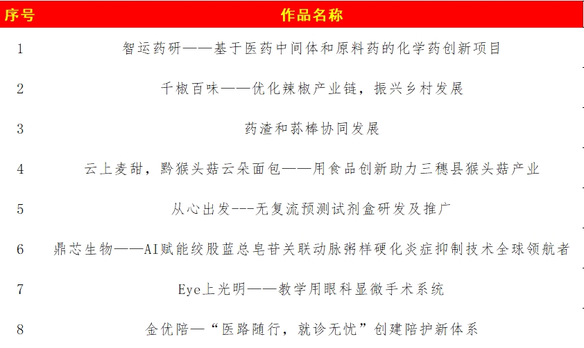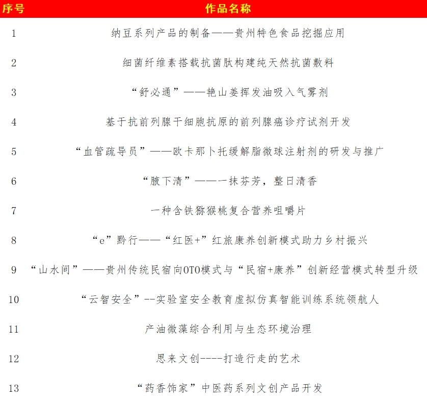 太阳成集团tyc33455cc官网第十三届“挑战杯”贵州省大学生创业计划竞赛拟授奖作品名单
