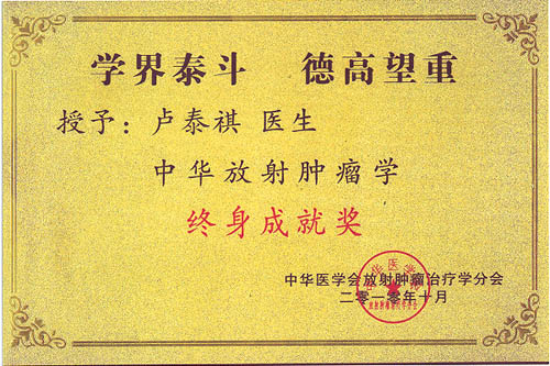 卢泰祺教授,1962年毕业于贵阳医学院医学系,留校工作,一直工作在肿瘤临床、教学、科研第一线。当时,肿瘤学作为一门新兴学科,特别是放射肿瘤学,在贵州几乎是空白,既缺少医疗设备,又没有专家指导。最早只有几张病床,没有单纯的肿瘤科建制,人员设备奇缺。尽管如此,卢泰祺教授仍坚持着他的肿瘤医学探究,其艰难可想而知。他说:“那时,为了给病人做放射治疗,没有现在那样先进的医疗设备,如治疗宫颈癌就得手持器械拿着放射性物质为病人治疗,医生不得不承受辐射危险。”为了改进和提高治疗效果,他不断学习,翻阅大量国内外肿瘤资料,研究国内外新治疗方法,发现新药品,结合中医疗法,提高治疗效果。在工作中,卢泰祺教授非常注重人才培养,加强业务指导,他所指导的医生大都已是主任医师、教授和硕士生导师了,更是我省肿瘤医疗战线的主力军。