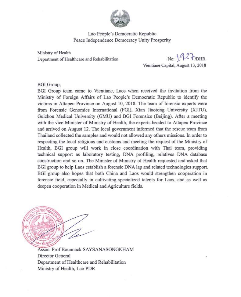 据悉,救援团队在离开之际,收到了来自老挝人民民主共和国卫生部的感谢信。
