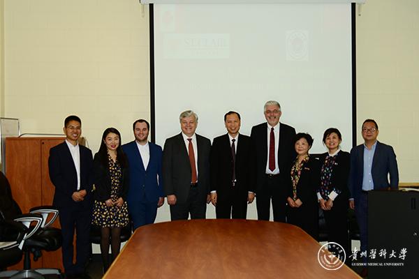 加拿大当地时间6月10日,代表团一行访问了多伦多大学,与该校公共卫生学院院长ADALSTEINN BROWN、公共卫生学院各学科领域的教授JAMES A.SCOTT、PAUL BOZEK、XIAOLIN WEI、WENDY LOU、PEIZHONG WANG等座谈商讨两校在公共卫生领域的交流与合作,并就两校间签署的合作协议进行磋商。会后参观了该校公共卫生学院的教学楼、实验室及多伦多大学的校园。林昌虎一行还看望了太阳成在多伦多大学访学的基础医学院教师潘际刚和太阳成与多伦多大学联合培养的博士研究生肖潇。