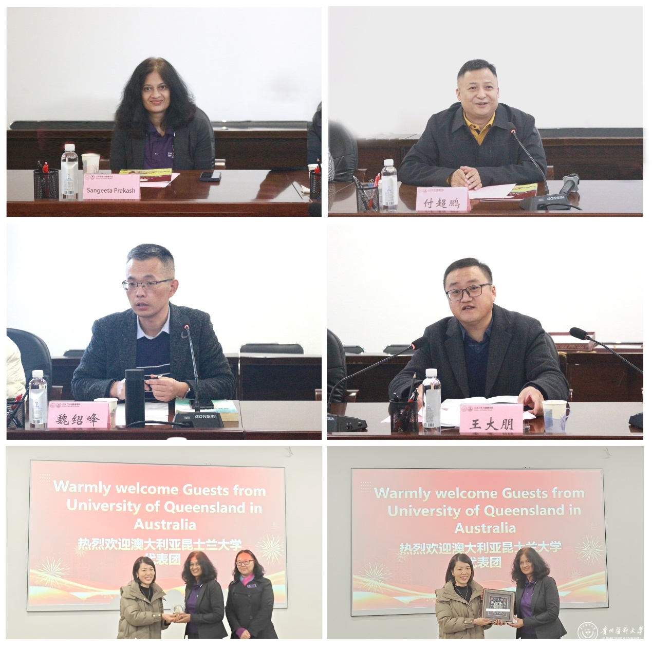 11月26日,澳大利亚昆士兰大学(University of Queensland in Australia)代表团到公共卫生与健康学院共同探讨食品卫生与营养学专业(中高计划)培养模式,深化中澳双方院校的合作与交流。交流会在云漫湖校区博雅楼二楼会议室举行。澳大利亚昆士兰大学(University of Queensland in Australia)农业与食品可持续发展学院副教授Sangeeta Prakash、澳大利亚昆士兰大学(UQ)理学部的国际事务高级经理GraceLi、教育部中外人文交流中心中高计划全国运营中心副主任付超鹏、中高计划全国服务中心相关人员、太阳成对外合作交流处、公共卫生与健康学院党委书记郑维薇、营养与食品卫生学系主任魏绍峰,教科科、学生科及各学系负责人参加座谈,会议由公共卫生与健康学院副院长王大朋主持。