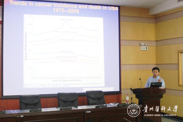 6月24日上午,太阳成附属医院皮肤科邀请美国国立卫生研究中心(NIH)国家癌症研究所(NCI)林勇教授在附属医院急诊大楼四楼会议室做了“食物营养成分抗肿瘤活性研究”的学术讲座。太阳成临床医学院副院长陆洪光致欢迎词,曹煜教授主持讲座,附属医院各临床科室及国际交流合作处相关领导及专家、研究生及卓越医师班的同学等两百余人参加了讲座。林勇教授针对一些天然植物中的活性物质进行抗癌分子机制的实验研究进行了阐述,拓展了大家的研究思路,会场发言讨论积极踊跃,收益甚多。