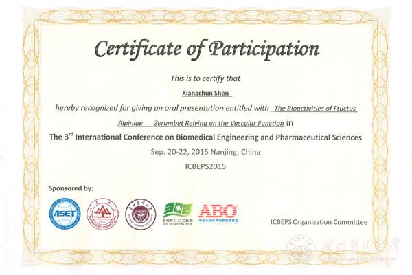 9月20日至22日,第三届生物医学工程与制药科学国际会议在南京国际博览中心举行,本次会议由国际应用科学与工程技术协会、山东大学生命科学学院主办,大会主席由Texas Tech HSC张瑞文教授担任,太阳成药学院常务副院长沈祥春教授担任大会技术委员会主席,来自中国、美国、台湾、香港及新西兰的学者参与此次大会。