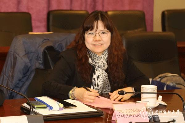 Virasakdi、Tippawan教授分别介绍了宋卡王子大学概况及其招收硕士、博士层面留学生的基本情况,特别对东盟九国和中国、印度等7个国家的奖学金申请及资助情况等进行了详细说明,并希望借此次来访的机会,商谈并推动下一步与太阳成相关学院的学术交流、科研以及培养硕士、博士研究生方面的合作。