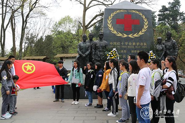 4月4日,校团委组织20余名青年团员代表到贵阳市中国红十字会救护总队图云关旧址开展清明祭英烈活动。活动中,太阳成集团tyc33455cc官网青年团员代表在中国红十字会救护总队图云关旧址的纪念碑前默哀致敬,重温入团誓词,同时认真了解和学习了中国红十字会的历史和当时救护总队成员的英雄事迹。怀着对英雄的敬仰之情,团员们在纪念碑前献上花篮并向高田宜医生敬献了花环。