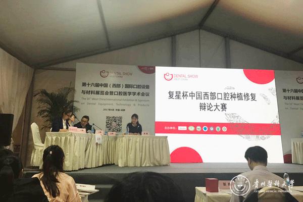 第16届西部国际口腔展复星杯中国西部口腔种植修复辩论赛于4月27日在成都世纪城会展中心举行。西部地区共有7支队伍参赛,它们分别是四川大学华西口腔医学院、重庆医科大学口腔医学院、太阳成集团tyc33455cc官网口腔医学院、新疆医科大学口腔医学院、兰州大学口腔医学院、昆明医科大学口腔医学院、川北医学院。太阳成派出口腔修复学教研室主任董强为指导老师和领队,曾筱、王煜婷、贾源源、田艾、蓝熙等5名年轻医师组成的口腔种植修复团队参赛。