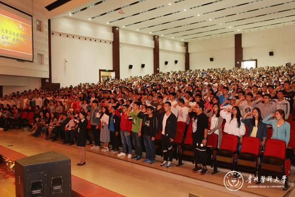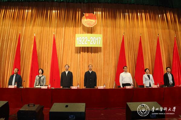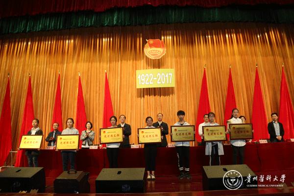 会议开始前,全体学生代表重温入团誓词。会议在高昂的国歌声中拉开帷幕。罗鹏宣读了2016年度“五•四红旗基层团组织”、 “先进团支部”名单;黄亚励宣读了2016年度“优秀共青团员”、 “优秀共青团干部”名单。主席台领导为获奖代表颁发奖牌、奖状。“贵州青年五四奖章”获得者苏胜发,“五•四红旗基层团组织”、“共青团工作先进个人”代表马曾珍,“先进团支部”代表张培,“优秀共青团员”代表李芮做交流发言,他们纷纷表示要在今后的学习、工作中不辱使命,奋发有为,为学校改革发展做出自己应有的贡献。