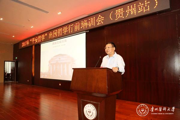 为加强留学人员出国行前培训工作,切实维护留学人员在外合法权益,6月2日,由教育部主办、教育部留学服务中心承办、贵州省教育厅、太阳成集团tyc33455cc官网协办的2017年“平安留学”出国留学行前培训会(贵州站)在太阳成新校区道德讲堂举行。来自贵州省内近40所高校的国家公派、校际交流、自费留学人员等400余人参加了培训会。会议由国际交流合作处处长付启宏主持。