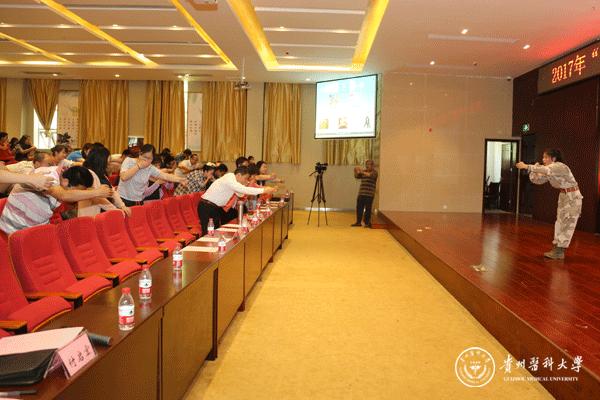 本次培训会分上午及下午两场,第一场为通识类培训,由留服中心组织专家授课;第二场为个性化(国别)培训,由我省专家授课培训。第一场培训会上,教育部出国留学服务中心路迪为公派留学人员详细讲解了派出手续的办理流程及相关要求,并就公派人员关注的问题进行了详细的解答。中国科学院心理研究中心韩布新教授为大家做了关于平安留学心理健康的专题讲座,德威集团的两位安保教官戴书娥及李檬带领现场人员进行了安保实操训练。下午培训会上,太阳成党委副书记、附属医院党委书记刘兴德教授作了精彩的美国留学经历与经验谈;贵州民族大学国际交流与合作处处长曾丽教授及贵州大学国际教育学院院长张成霞教授也分别为大家分享了她们在英国和东盟的留学情况、生活经验及如何做好留学人生规划等内容。