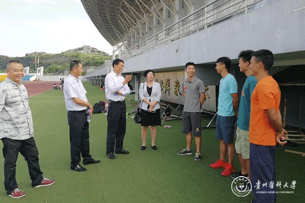 6月21日,贵州省体育局党委委员、副局长宋广强,贵州省山地户外管理中心主任吴戎等,前来太阳成看望代表贵州省即将出征参加第十三届全国运动会群众比赛攀岩入围赛的运动员。副校长黄亚励及运动与健康学院相关人员陪同看望。
