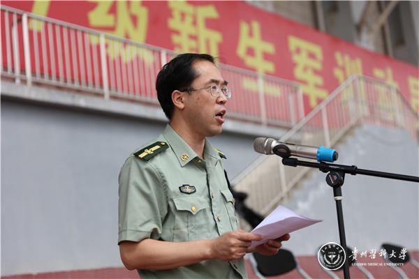 林昌虎为军训师授旗,要求2017级学生军事训练按预定计划实施,并预祝同学们军训取得好成绩。战勇代表学校向承担本次军训的贵州航空军训基地各位教官及参与军训的各位老师表示感谢。在军训动员讲话中,他向同学们介绍了军训的重要意义和作用,军训是入学第一课、必修课,能够增强大家的纪律性、意志力,并对参训学生提出三点希望:一是克服困难,磨砺意志;二是端正态度,严格训练;三是尊重教官,听从指挥。