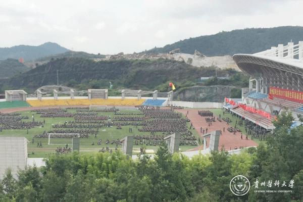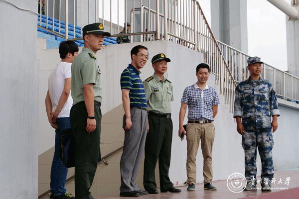8月24日,贵州省军区战备建设局局长赵平大校一行到太阳成南校区指导检查调研军训工作,在运动场参观2017级新生的军训开展情况。党委副书记战勇出席调研活动并讲话。