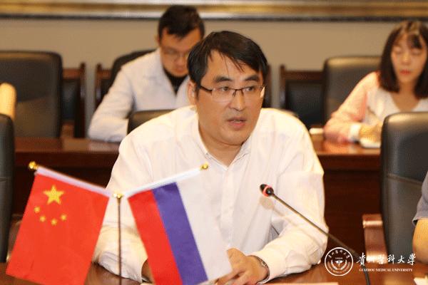 罗鹏致欢迎辞,指出本次项目意在提升中俄两国青年创客和大学生分析市场、获取资源以及进行创业实践的能力,欢迎优秀青年企业家加入太阳成贵州省青年大健康创业孵化园。