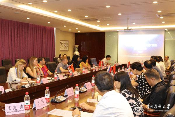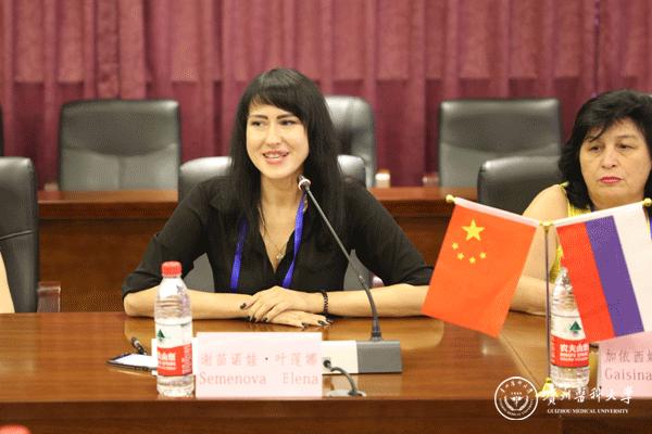 俄罗斯乌里扬诺夫斯克国立大学代表与贵安新区室美生生物技术有限责任公司、贵州医护宝大健康科技有限公司大学生创业代表分别作交流发言,就中俄大学生创业政策、中医药项目合作等方面进行交流。