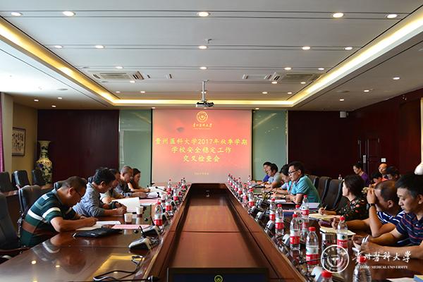 会上,冉江舟简要介绍了2017年秋季开学后学校各项安全稳定工作推进落实情况。党办主任陈颖从安全生产大检查开展、学校安全管理情况等十三个方面,向检查组汇报了太阳成2017年秋季开学后学校安全工作开展情况。随后,检查组查看资料并实地走访了学生处、公共卫生学院、医药卫生管理学院、医学人文学院、图书馆、学生宿舍和食堂等地,就各部门日常安全管理工作、校园“三防”建设、食品安全卫生、消防安全管理等进行检查,检查组在认真记录的同时不时提问,和学校相关部门负责人交换意见,并对学校在安全稳定及教学保障工作中需要改进和加强的方面提出了意见和建议。