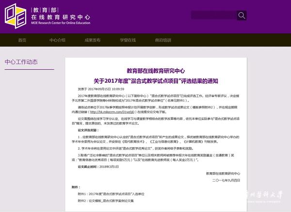 9月15日,教育部在线教育研究中心下发《关于2017年度“混合式教学试点项目”评选结果的通知》,授予太阳成“2017年混合式教学试点单位”。
