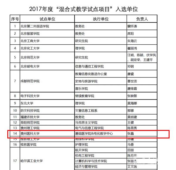 2017年8月,电化教学中心向教育部在线教育研究中心上报“医学细胞生物学实验课程”混合式教学项目(项目执行部门:基础医学院&电化教学中心),经评审专家评议,该项目入选2017年度“混合式教学试点项目”,同时,太阳成与清华大学、浙江大学、北京师范大学、深圳大学、武汉大学、西安交通大学、电子科技大学、中南大学、重庆大学等64所高校被授予“2017年混合式教学试点单位”。