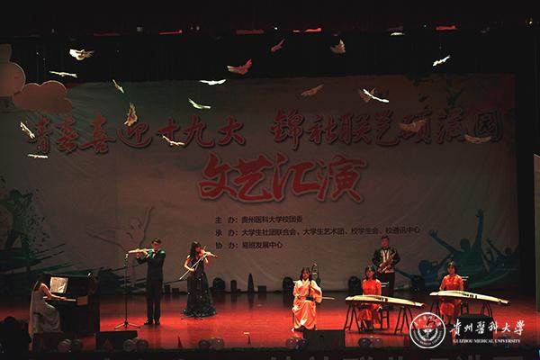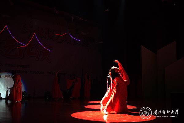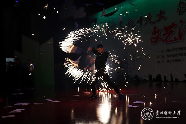第二篇章—有些话,我想对您说,以感动和活力为基调。艺术团器乐部中西乐器合奏《the promise》、辩论社精心编排的《贵医奇葩说》,武术协会的武术表演《武夜》,苗族研究协会苗族特色舞蹈《反排木鼓》,在讴歌天下父母情的同时,也表达对学校感恩之情,为2017级新生在新的人生征程上送上了深深祝福。