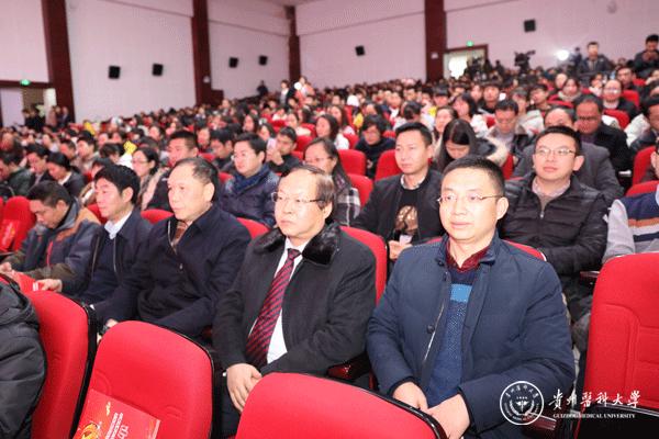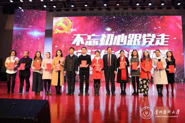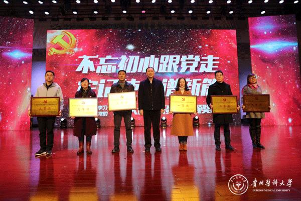 12月8日,学校学习宣传贯彻落实党的十九大精神系列活动颁奖晚会在南校区大礼堂举行。党委书记林昌虎,党委副书记吕保平,党委副书记、附属医院党委书记刘兴德,副校长罗俊,党委副书记战勇,副校长黄亚励、冉江舟,天然产物化学重点实验室副主任杨小生、傅舒安以及省教育厅社政处副处长(主持工作)赵祥出席,学校副科级以上干部(含教研室负责人),学校(含天然产物化学重点实验室)各基层党支部书记,天然产物化学重点实验室、附属医院、第二、三附属医院副处级以上干部,附属肿瘤医院、乌当医院、白云医院、遵义医院医护人员代表以及学校各二级学院教师与学生代表1500余人现场观看。