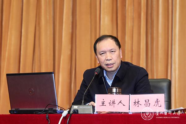 林昌虎强调,青年兴则国家兴,青年强则国家强。高等医学院校要紧密围绕立德树人根本任务,认真贯彻落实党的十九大精神、习近平总书记重要讲话精神和对贵州发展的重要指示精神及全国全省高校思想政治工作会议精神,深刻认识和把握做好新时期高校思想政治工作的特殊重要性和现实紧迫性,着力培养又红又专、德才兼备、全面发展的现代医药卫生管理人才。