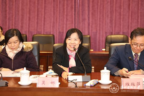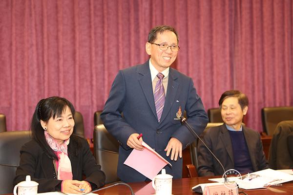 12月26日,泰国宋卡王子大学(维拉萨)Virasakdi教授一行13人到太阳成交流访问,座谈会在知雨楼六楼会议室召开,副校长罗鹏出席,校长办公室、教务处、国际交流合作处、研究生院、药学院、公共卫生学院、护理学院、口腔医学院、医药卫生管理学院、生物工程学院等相关负责人参加,会议由国际交流合作处处长付启宏主持。