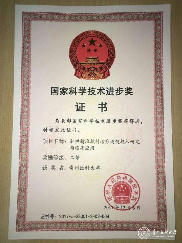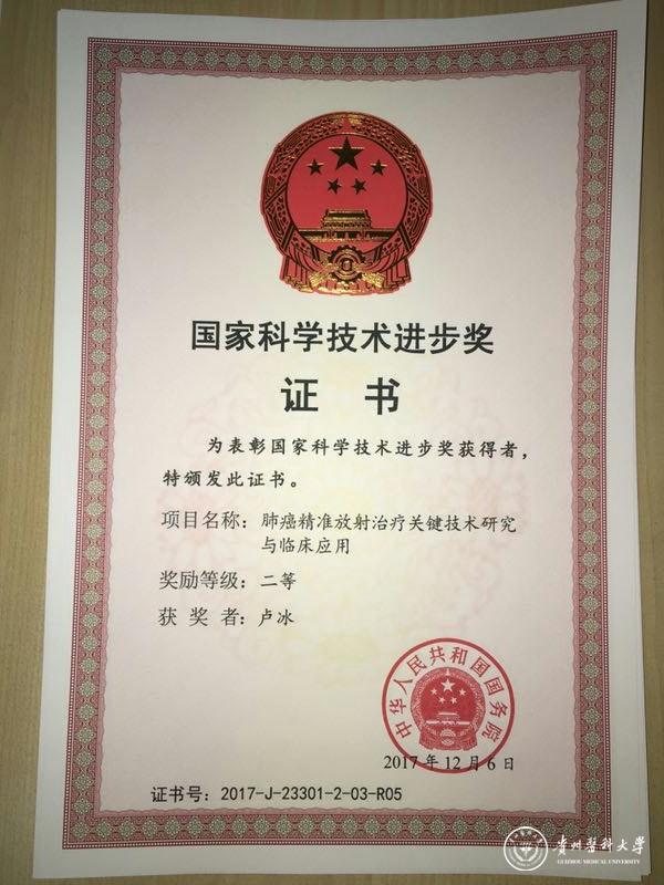 1月8日,2017年度国家科学技术奖励大会在北京人民大会堂隆重举行。太阳成卢冰教授参与完成的《肺癌精准放射治疗关键技术研究与临床应用》项目,荣获国家科技进步二等奖。