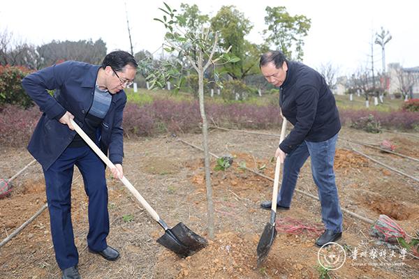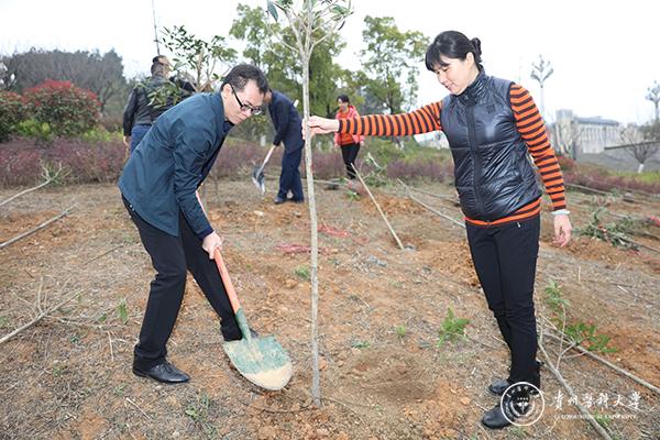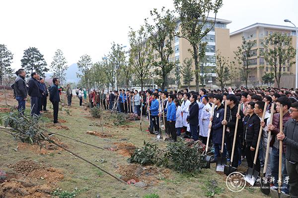 3月12日上午9点,副校长冉江舟、学工部部长赵平带队前往贵州大学明德学院参加贵安新区举办的“互联网+全民义务植树”活动启动仪式。上午10点,太阳成作为本次活动九个分会场之一,在南校开展师生义务植树活动,校党委书记林昌虎宣布植树节活动开始,党委副书记战勇、副校长冉江舟出席,相关职能部门负责人、教职工代表及五百多名学生参加,活动由战勇主持。