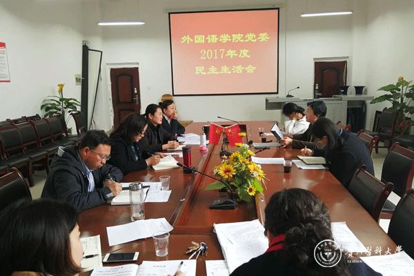 3月26日,外国语学院2017年度党员领导干部民主生活会在外国语学院会议室召开。副校长黄亚励出席,校督导组组长、党委组织部副部长李红,校党委组织部人才科副科长方彦婷到会督导。外国语学院领导班子全体成员、党支部书记、教研室负责人及教师代表参加会议。会议由外国语学院党委书记张婷婷主持。