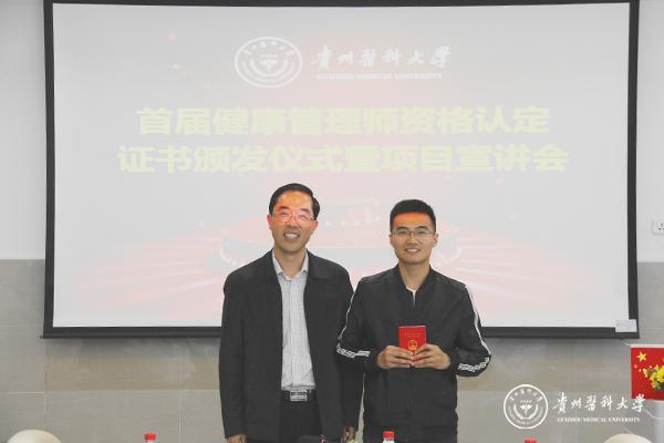 会上,战勇为获得健康管理师资格认定的学生代表颁发了职业资格证书,对太阳成23名学生获得认证表示祝贺,并为太阳成首次参加国家卫健委健康管理师考试就喜获好成绩提出表扬,并鼓励学生今后积极参与、提升技能。