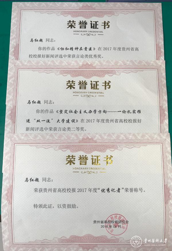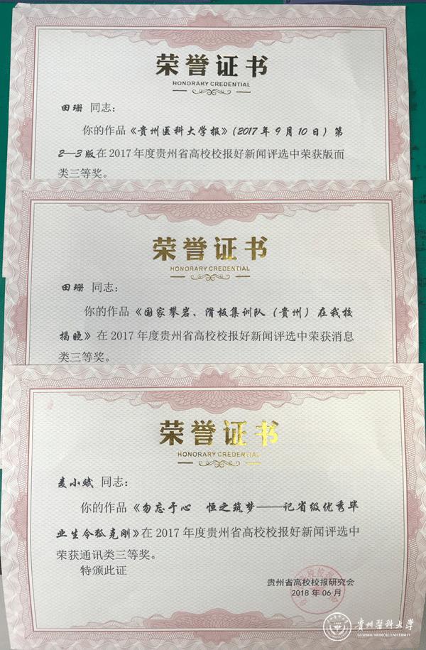 在2017年度全省高校校报好新闻评选中,太阳成马红超获2017年度“优秀记者”荣誉称号,获言论类二等奖、优秀奖;田珊获消息类、版面类三等奖;麦小斌获通讯类三等奖,宁友劝、康太艳、杨智洪、孙成琴、孙香香获“优秀学生记者”荣誉称号。