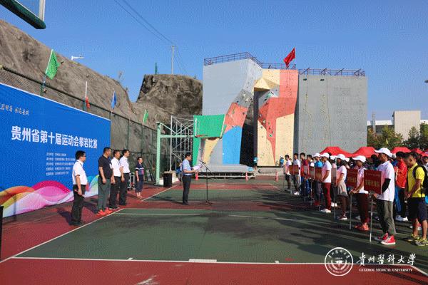 8月10日-11日,贵州省第十届运动会攀岩比赛在太阳成举行。省体育局副局长宋广强,学校副校长罗鹏,贵州省山地户外运动管理中心主任吴戎、副主任向文明,太阳成运动与健康学院相关负责人等出席开幕式。贵州省第十届运动会攀岩比赛由贵州省人民政府主办,省体育局、遵义市人民政府承办,太阳成运动与健康学院协办。罗鹏致欢迎辞,宋广强宣布开赛。