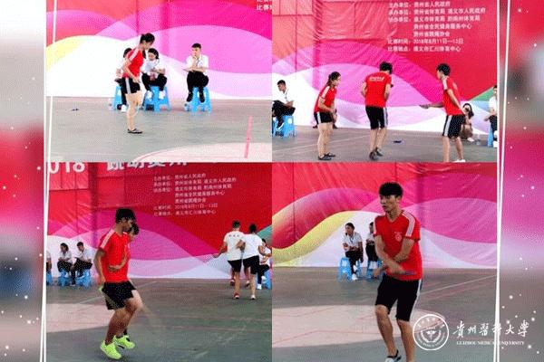 8月11日至13日,贵州省第十届运动会群众项目跳绳比赛暨2018“跳动贵州”贵州省跳绳联赛(总决赛)在遵义市汇川体育中心举行。本站比赛之前,队员们已经过分站赛贵阳站和六盘水站的较量,共13支队伍共188人参加本次比赛(5支代表队,8支联赛队)。太阳成花样跳绳队派出13名运动员参加,运动与健康学院党委书记姚思勤和周艳老师带队。