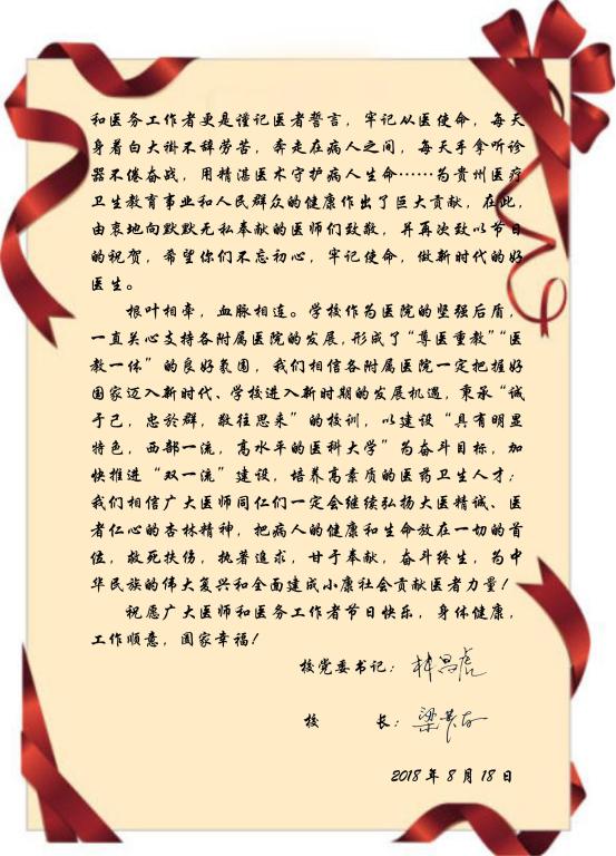 太阳成集团tyc33455cc官网前身为1938年建立的“国立贵阳医学院”,是当时全国最早直属国家教育部的9所高等医学院校之一,学校始终坚持“文化建校、质量立校、人才强校、科研兴校”的办学理念,恪守“诚於己、忠于群、敬往思来”的校训,秉承“大医精诚”的贵医精神,立足贵州,服务全国,面向世界,为建成特色鲜明、同类先进、国内一流的百年医科大学而努力奋斗。