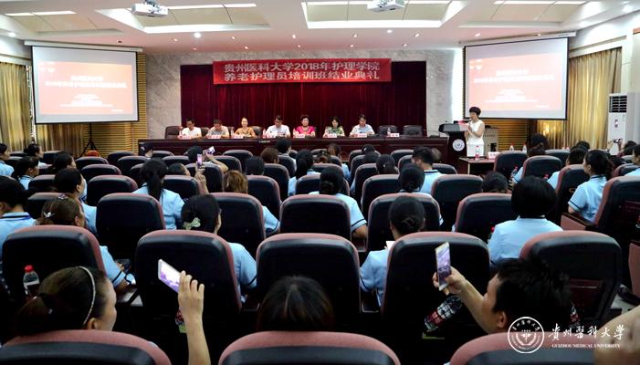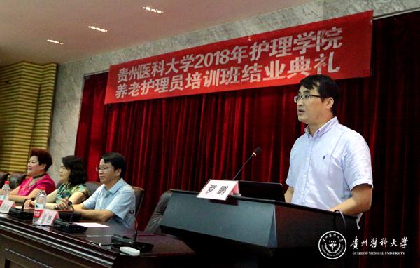 8月19日,护理学院2018年养老护理员培训班结业典礼在北京路校区基础二号楼道德讲堂举行。副校长罗鹏出席并致辞,科技创新与产业发展处、护理学院、黎平县人力资源和社会保障局、黎平县总工会、贵阳市观山湖区人力资源和社会保障局、曜阳养老管理有限公司等部门领导及护理学院师生代表、养老护理学培训班104名学员参加典礼。典礼由护理学院教学科研管理科科长王秀红主持。