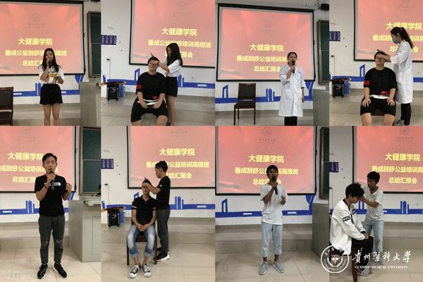 培训期间,每个周六、周日上午,学员们分成4组,分别到贵医社区、大营坡社区、万江路社区和花溪松涛苑小区开展免费刮痧调理活动,为社区居民服务约9000人次。在7月30日-8月3日期间,16名学员到贵州民族大学和下坝村开展免费刮痧调理活动,服务村民学生约500人次;在7月21日-8月22日期间,免费服务本校教职员工生约500人次。松涛苑小区负责人唐经理说,该社区服务组织井然有序,学生亲切热情、懂礼貌、守规矩。被服务过的社区居民也纷纷表示,学员们刮痧调理效果好,解决了很多长期没有解决的疾病,颠覆了他们对传统刮痧的认识。