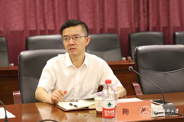 近日,省教育厅副厅长鞠洪一行莅临太阳成调研指导工作,座谈会在新校区知雨楼六楼大会议室举行,教育厅民办处、高教处、安稳处、规划处及太阳成有关部门负责人参加,副校长罗俊主持。