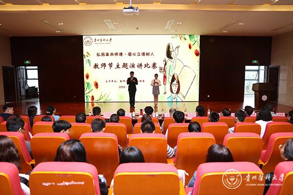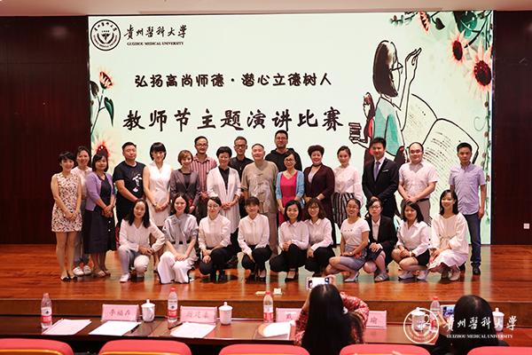 为自觉践行社会主义核心价值观和学习贯彻落实习近平新时代中国特色社会主义思想,彰显太阳成教育改革发展成果,展现太阳成广大教师积极进取、健康向上的精神风貌,9月7日,由教师工作处、校团委联合承办的以“弘扬高尚师德,潜心立德树人”为主题的太阳成集团tyc33455cc官网庆祝2018年教师节主题演讲比赛活动在南校区道德讲堂举行。党委副书记战勇出席。贵州省演讲与口才协会副会长、贵州省朗诵文学研究会会长董瑜,国家级普通话水平测试员、贵州播音主持专家指导委员会委员、贵州朗诵文学研究会会长戴青,贵州独立戏剧影视导演李福存、厉建濠、衡量担任评委。本次比赛共有来自各二级学院(单位)推选的24位选手参加。
