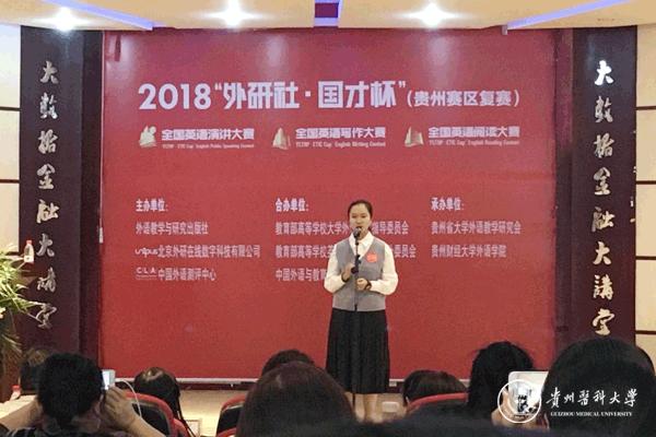 10月27日,“外研社·国才杯”全国英语演讲、写作和阅读大赛贵州赛区复赛在贵州财经大学举行。该赛事每年定期举行,是大学生展现英语能力和讲好中国故事的交流平台。今年共有来自全省21所高校的162名同学分别在写作、阅读和演讲三个项目中进行角逐。