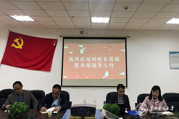 听取汇报后,田晓滨肯定了图书馆近年来的工作,他指出,图书馆是高校三大支柱之一,服务于教学、科研、医疗,是学校立德树人的重要平台,是大学生的第二课堂,学校党委和行政历来高度重视图书馆工作。