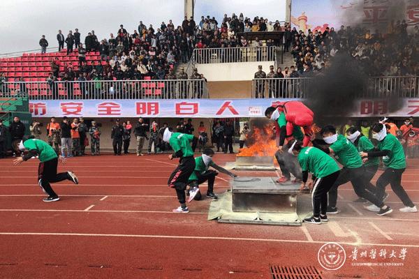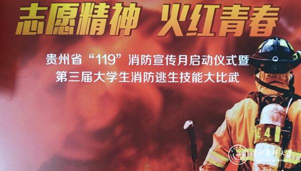 立冬岁寒,青春火红。11月8日,由贵州省人民政府主办,贵州省消防总队、贵安新区管理委员会、大学城管委会、贵安新区消防支队承办,贵州财经大学、贵州广播电视台交通广播、贵州亮剑综合训练基地协办,以“全民参与,防治火灾”为主题的贵州省“119”消防宣传月启动仪式暨第三届大学生消防逃生技能大比武,在贵州财经大学大学城校区体育场举行。
