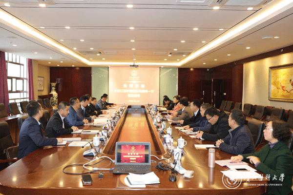 11月16日,牡丹江医学院院长朱晓峰一行9人来校交流学习更名大学,教学、科研、管理等成功工作经验与做法。交流座谈会在南校区知雨楼6楼大会议室举行,党委书记林昌虎、副校长罗俊出席,党委办公室、校长办公室、教务处、科技处、人事处、教师工作处、研究生院、医学检验学院、运动与健康学院、临床医学院等单位负责人参加,会议由罗俊主持。
