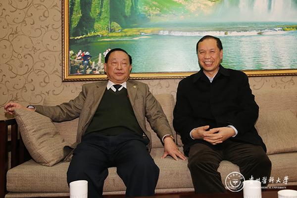 林昌虎介绍了学校在人才培养、科学研究、服务社会、对外交流与合作等方面工作,并感谢廖万清院士多年来对太阳成学科建设、人才培养、重点实验室评估、科技成果、项目申报、人才基地建设等各方面做出的巨大支持,并希望廖院士能继续关心学校发展和健康贵州的建设。廖院士对林书记的热情接待表示感谢,他指出,太阳成集团tyc33455cc官网教育科研工作在学校党委行政领导的全力推动下取得了日新月异的进步,每次来到学校都能感受到学校全体员工奋发拼搏、克服困难、积极向上的精神风貌,他将一如既往支持推动学校及医院工作,希望贵州百姓的健康生活质量得到提高。