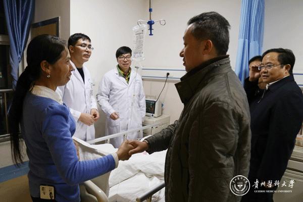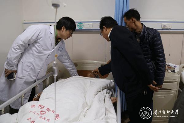 这次手术的成功应追溯到今年的6月27日。太阳成党委统战部在校党委的大力支持下,组织学校党外专家团20余人赴三穗县开展“三送”(送医、送药、送教育)活动助力党建扶贫工作。通过学校驻村干部的联系,党外专家团深入到多位农户家中开展一对一帮扶。在此过程中,了解到贫困村民杨通成多年前因车祸导致右侧颅骨大面积缺失,头皮塌陷,虽性命无忧,但也就此失去了劳动能力,使原本幸福的家庭因为一场不幸的车祸而家徒四壁、因病致贫。经过现场仔细的了解和体察之后,杨华及麻醉科专家、民革基层主委高鸿当即决定,积极联系社会捐助为杨通成实施颅骨修补手术。在向学校党委主要领导汇报并得到大力支持后,经过太阳成统战部部长彭安辉、杨华及高鸿的积极联系与协调,第二附属医院将杨通成收治入院并减免了部分医疗费用,爱心人士为杨通成送来5万元捐款,颅骨修补材料和手术器材顺利到位。所有涓涓爱心暖流的汇聚,共同促成了杨通成颅骨成形术的圆满顺利开展。手术结束后,彭安辉受学校党委委托,为杨通成送去慰问,并对杨华及第二附属医院领导和所有医护人员的大力支持和辛勤工作表达感谢。