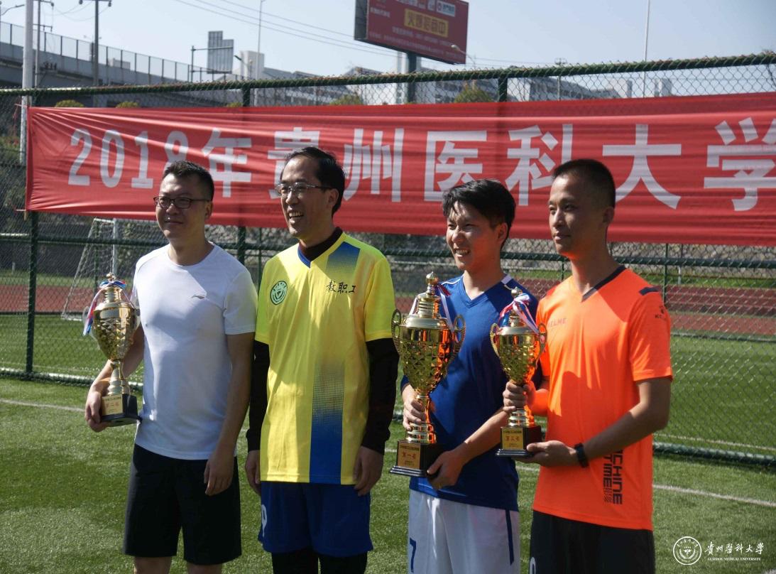 经过三周的精彩角逐,机关二代表队获冠军,后勤代表队获亚军,运动与健康学院代表队获季军。闭幕式上,战勇为获得名次的代表队颁发了奖杯。
