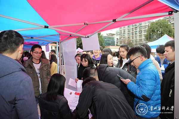 参加此次招聘会的单位包括毕节市七星关区人民医院、施秉县人社局、松桃县卫生局、云南玉溪江川区卫计局、浙江常山县卫计局、重庆天府矿务局职工总医院、广州市番禺区第二人民医院、湖北荆州市第一人民医院、中山大学附属第八医院及太阳成各附属医院等72家医疗卫生单位和正大天晴药业集团、江苏新晨医药有限公司、贵州源和药业有限公司、扬子江药业集团等53家企业。提供岗位覆盖了学校全部的医学类专业和大多数非医学类专业。
