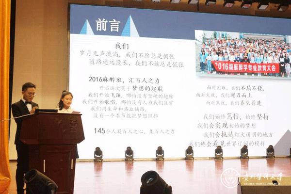 战勇代表学校向受表彰的学生先进集体和优秀个人表示热烈祝贺,向长期以来辛勤耕耘的老师们表示衷心感谢。他勉励同学们铭记习近平总书记的期盼与嘱托,明确新时期青年的奋斗方向与努力目标,并提出希望:要不忘初心,牢记使命;要不忘初心,继续前行;要不忘初心,传承精神。希望大家向先进学习、向榜样看齐、争做爱党爱国,甘于奉献,诚信友善、品学兼优的优秀青年,用个人的成才梦,共筑贵医梦、中国梦,为推进学校“双一流”建设,为区域医疗卫生事业和地方经济社会发展做出更大贡献。