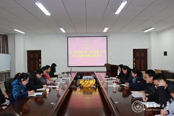1月7日,食品安全学院会议室召开2018年校内第三轮巡察工作第七巡察组意见反馈会,学校纪委书记王之瑞、第七巡察组副组长李道群及巡察组成员出席。会议由食品安全学院党委书记张雪晴主持,学院全体教职工参加会议。