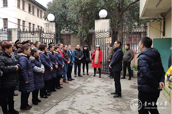 春节将至,1月28日,副校长冉江舟率后勤管理处(集团)、保卫处、各服务公司负责人对寒假和春节期间坚守在南、北校区的后勤、保卫工作一线员工进行了节日慰问。