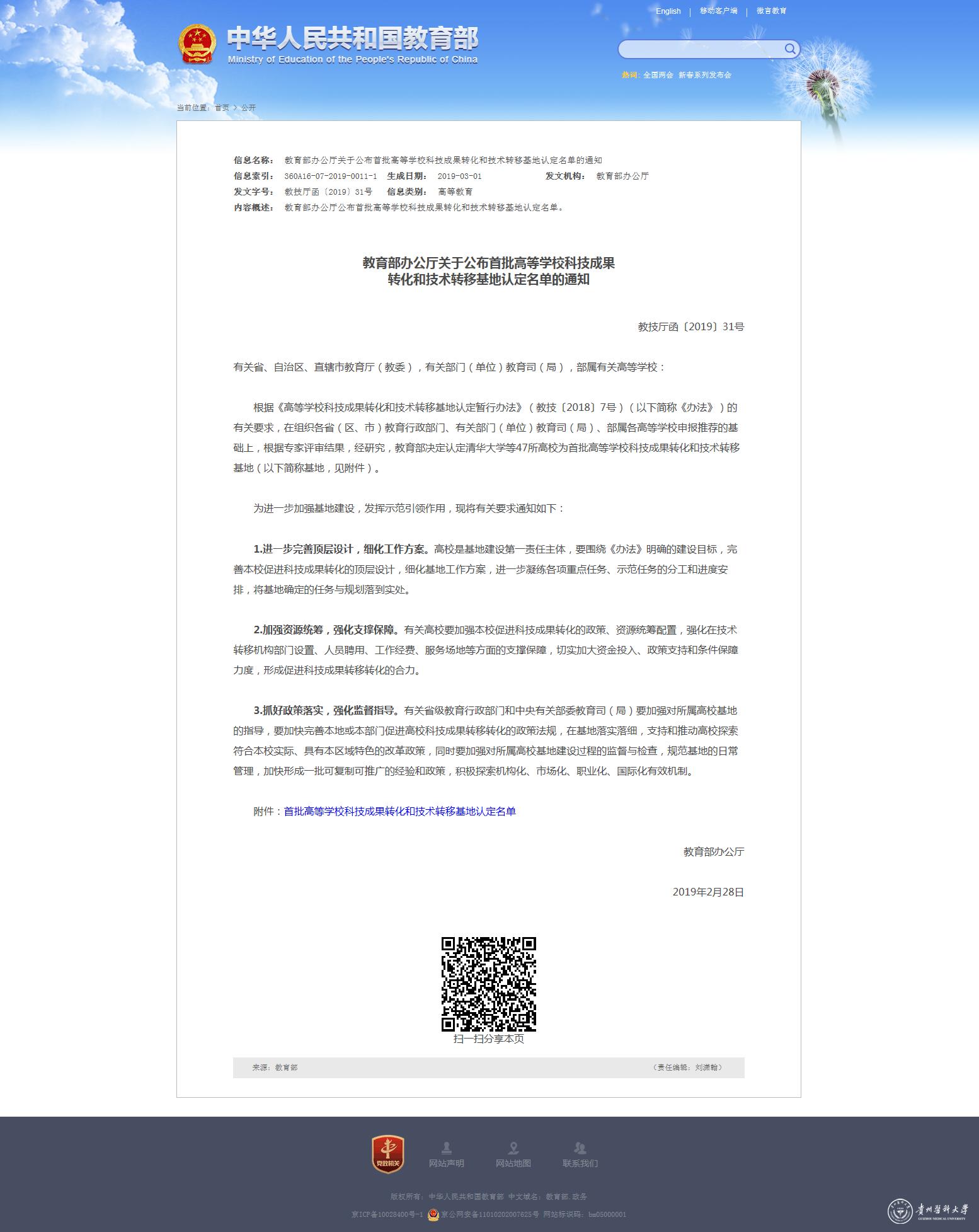 3月1日,教育部公布了首批高等学校科技成果转化和技术转移基地认定名单,清华大学等22个中央所属高校、首都师范大学等25个地方高校获得首批高等学校科技成果转化和技术转移基地认定。太阳成成为贵州省唯一入选高校,同时也是全国唯一当选的医科院校,太阳成科技成果转化与技术转移工作获得了教育部高度的认可与肯定。